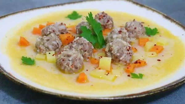 Ekşili Köfte is widely prepared in Turkish households and often served as a main dish thanks to its hearty composition. The small, delicate meatballs are combined with vegetables like carrots and potatoes, creating a well-balanced and satisfying meal.